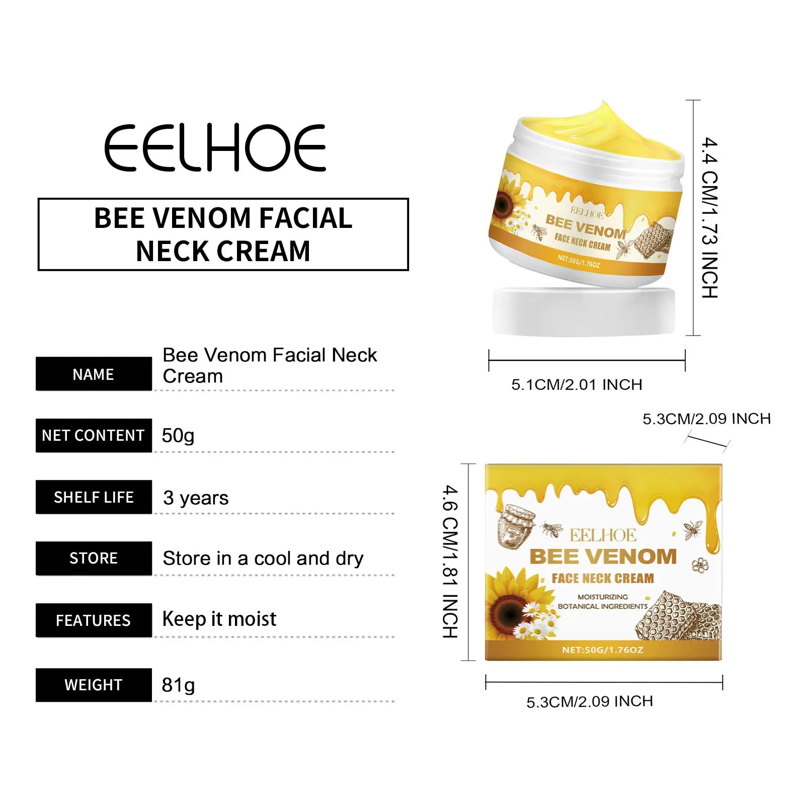 EELHOE Bee Venom Lifting Neck Cream Deep Moisturizing Face Repair Skin Barrier Smooth Hydrated Skin Firming Tightening Cream 50g