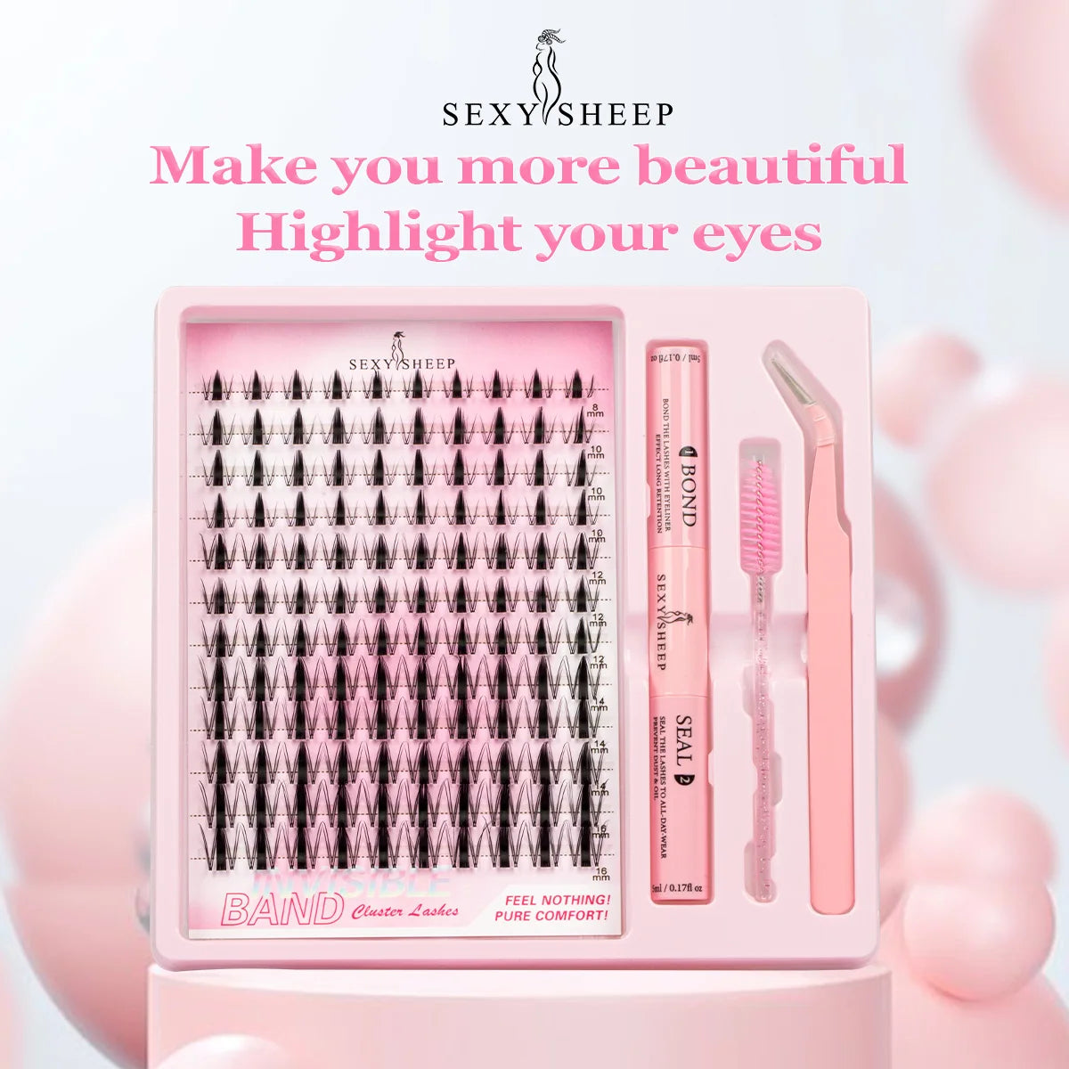 DIY Eyelash Kit 8-16mm Manga Lashes Mixed Tray Eyelash Clusters Individual Eyelashes Kit with Lash Bond Tweezer Brush